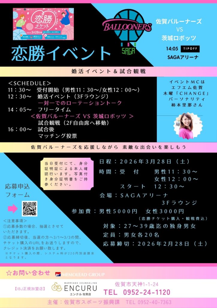 3月28日(土)恋勝イベント 開催【ENCURU佐賀店&佐賀バルーナーズ】